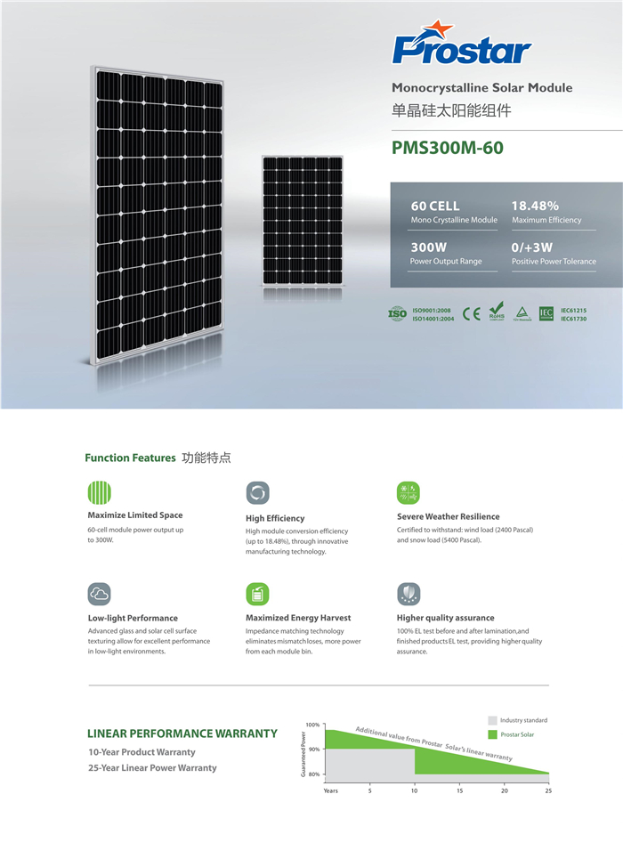 60片單晶硅太陽(yáng)能光伏組件 275-300W